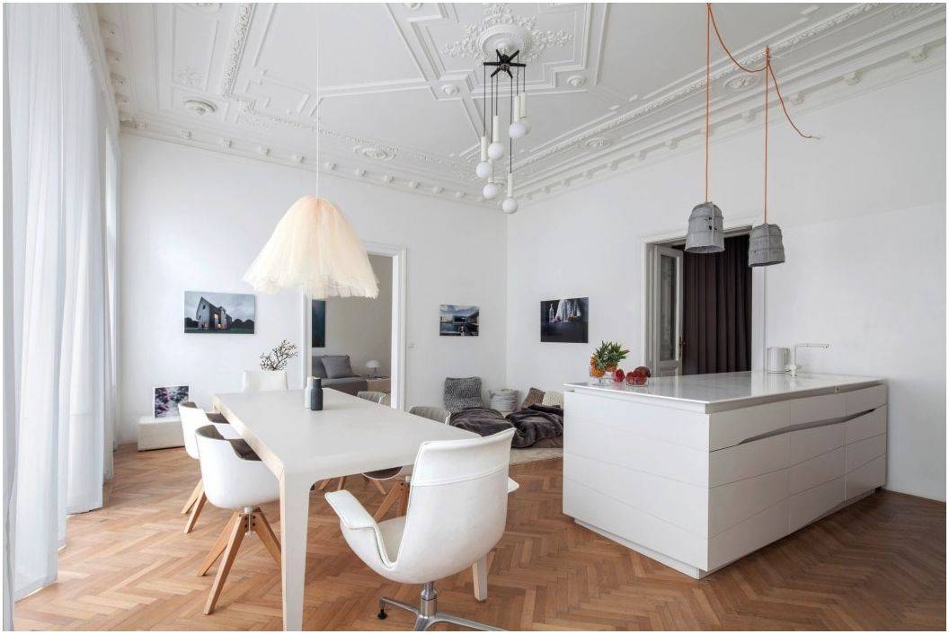 Неоклассицизм предполагает старое, но в новой интерпретации. Преобладают светлые оттенки и простота, доминирует классическое оформление дизайна, нет загруженности мебелью и техникой.