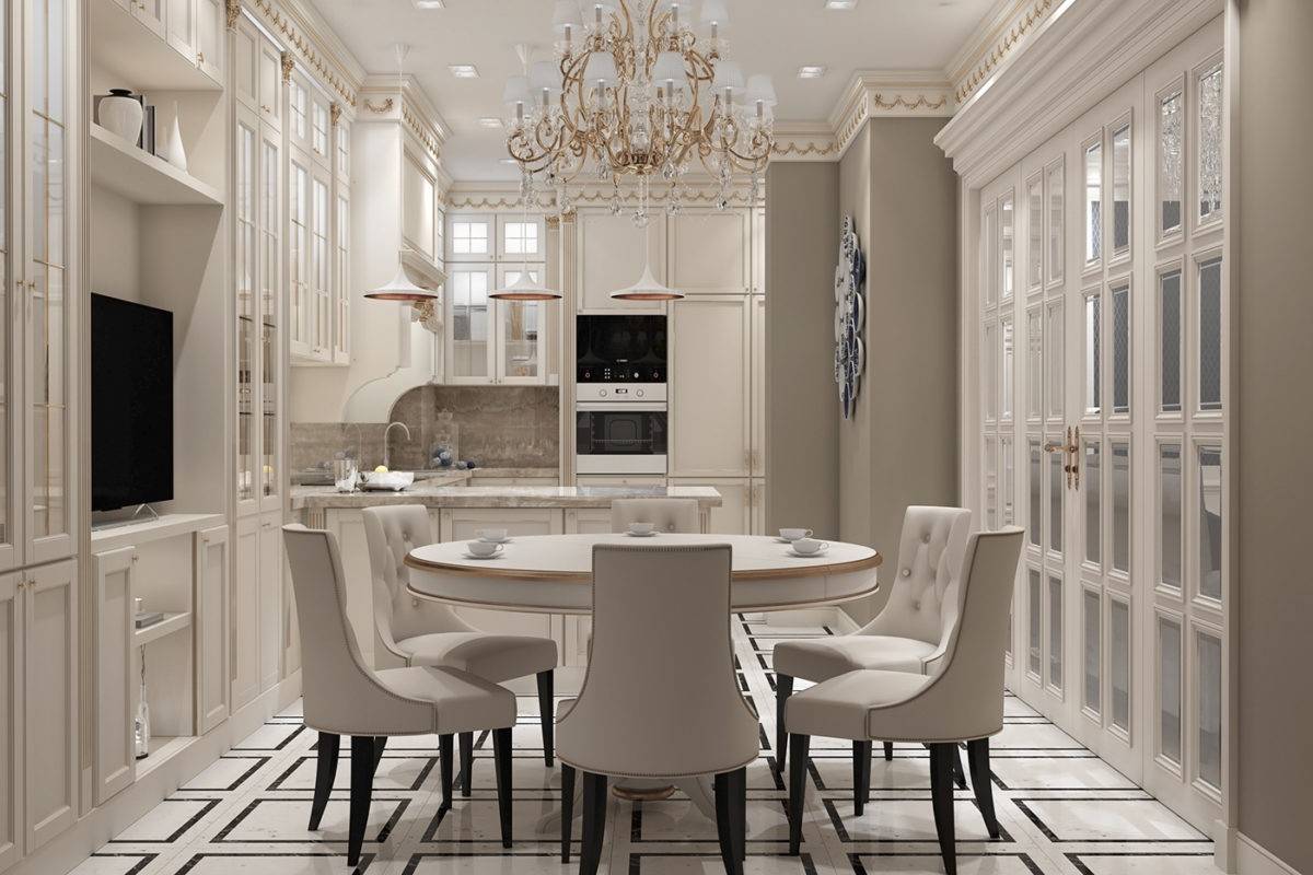 Обзор стильной квартиры с кухней в стиле неоклассика