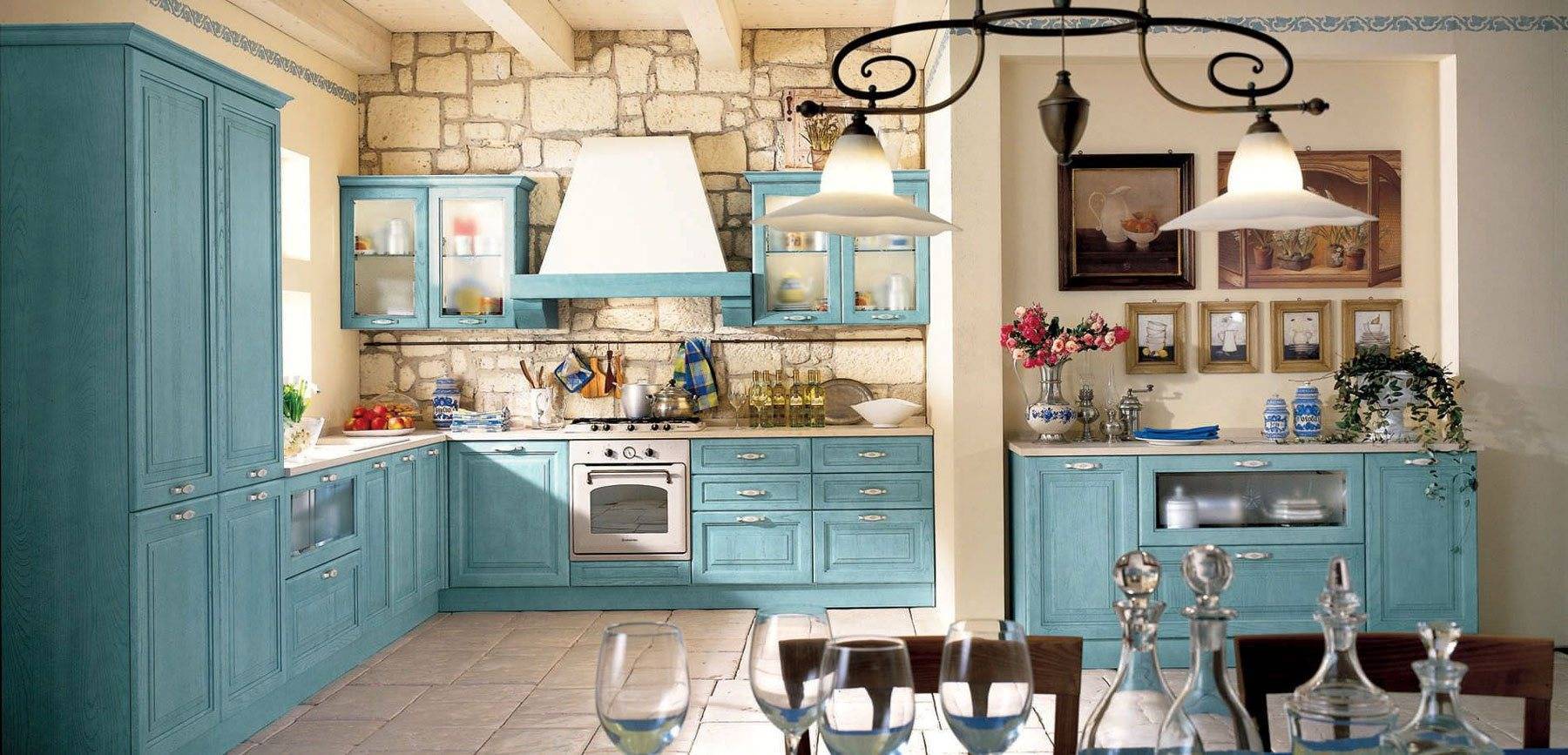 Хорошими цветами для оформления кухонного пространства будут небесно-голубой, васильковый, коричневый.
