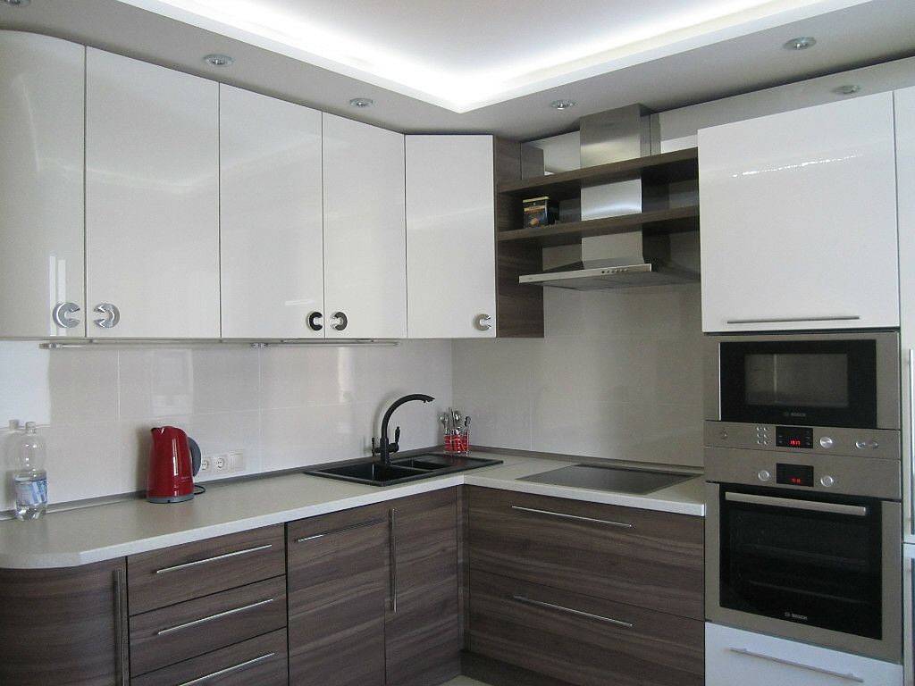 В кухнях до 9 кв.м. я всегда советую не экспериментировать с цветом. Когда нет явных предпочтений, выбирать белый глянец и вообще придерживаться светлых тонов.