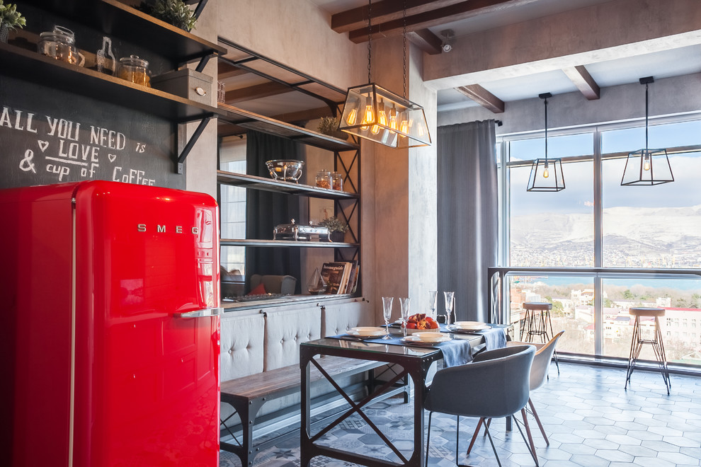 Вынос холодильника на балкон является довольно рациональным решением для маленькой комнаты. Так, как данный агрегат считается самым большим кухонным прибором, за счет его переноса освобождаются дополнительные квадратные метры. Холодильник отлично впишется как в рабочую, обеденную зону, так и место для отдыха.