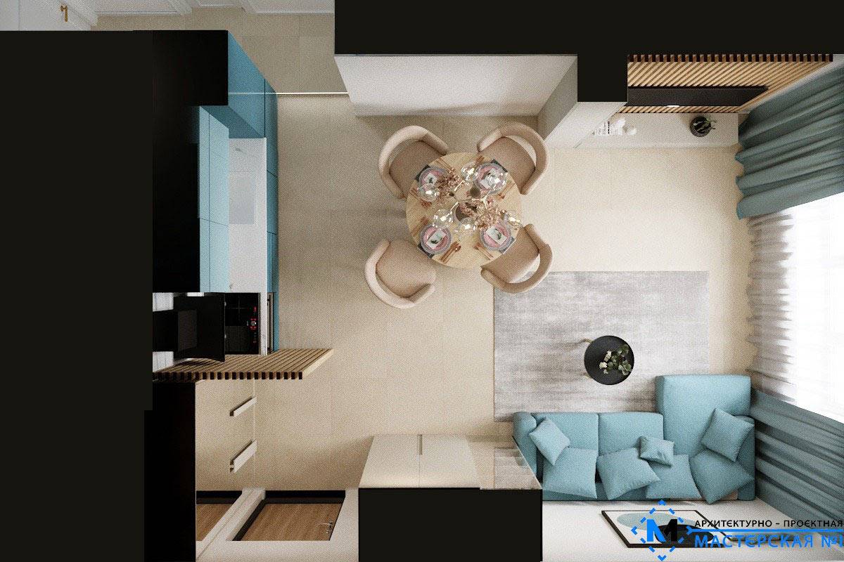 Пример дизайн-проекта с устройством кухни-ниши в квартире жилого комплекса «ЗИЛАРТ». Посмотреть дизайн-проект целиком.
