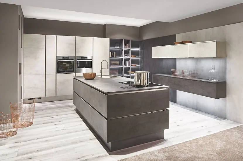 Мебельная фабрика «Мебиус» производит кухни под цвет бетона. Выбор зависит от бюджета заказчика, требований относительно эстетики и функциональности.