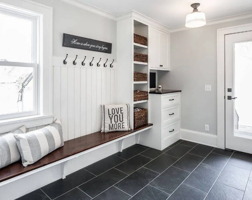 Пол в прихожей частного дома подвержен большой нагрузке. Именно в здесь чаще всего оставляются ролики, самокаты, велосипеды, обувь, сумки.