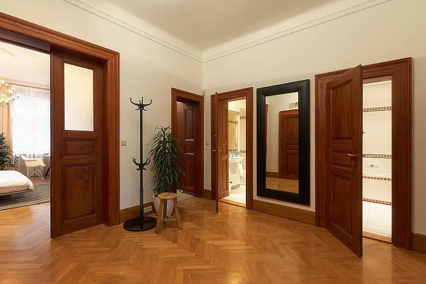 Из-за отсутствия окна, коридор следует оборудовать с помощью стеклянных дверей или прозрачных перегородок, сквозь которые будет проникать дневной свет.