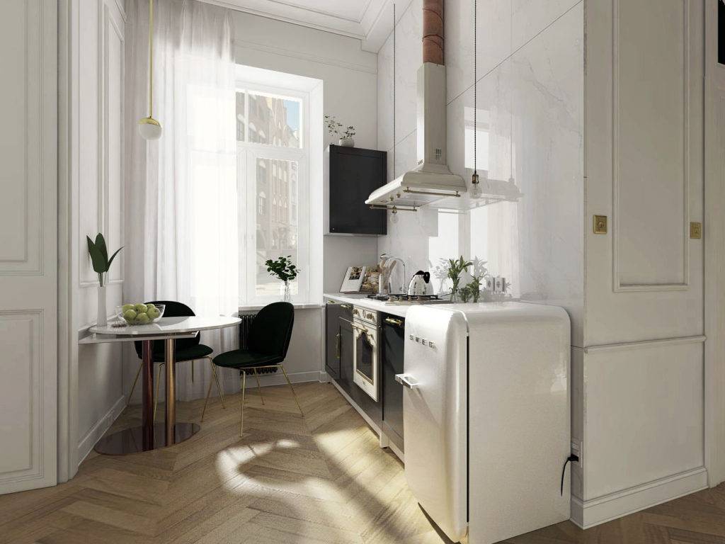 - на освободившемся месте после перемещения кухни можно оборудовать гостиную или вторую жилую комнату;