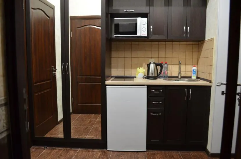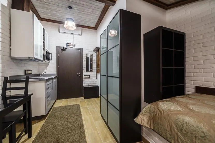 Если мини-кухня перемещается в прихожую, можно скрыть ее в шкафу, пока ею не пользуются.