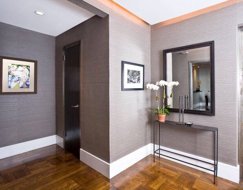 Стены прихожей следует отделать износостойкими материалами. Они должны выдерживать перепады температур и влажности, быть стойкими к механическим повреждениям. Для этой зоны подойдут виниловые обои, а также на флизелиновой основе;