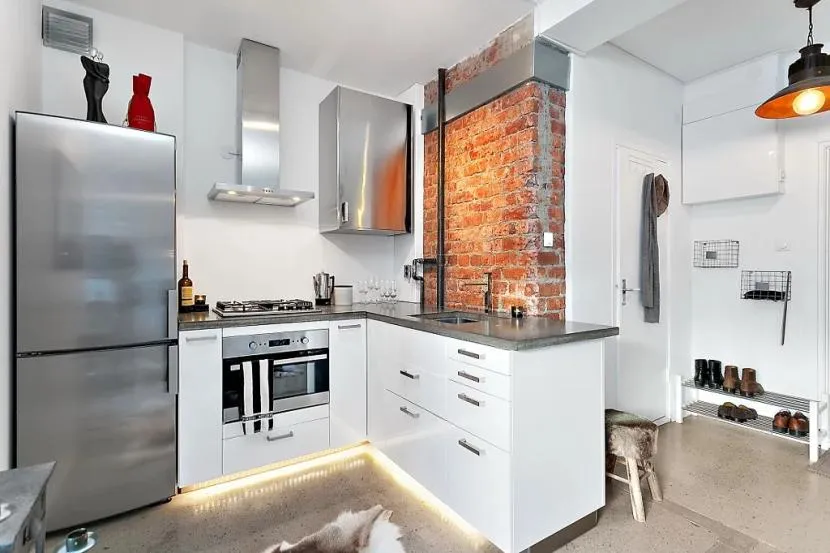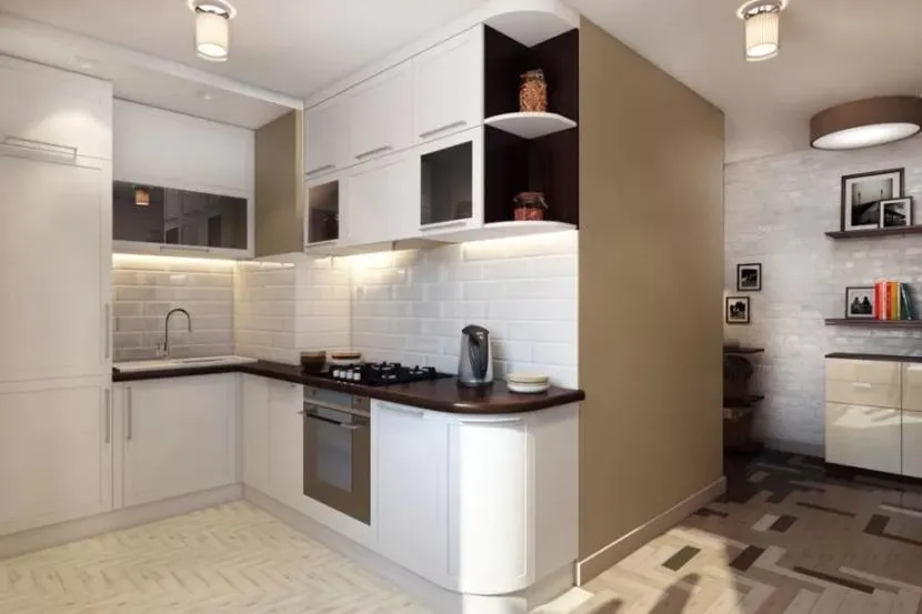 | Площадь квартиры используется более рационально. Освободившееся место может занять гостиная или еще одна жилая комната. | Из-за распространения запахов требуется установка сверхмощной вытяжки. |