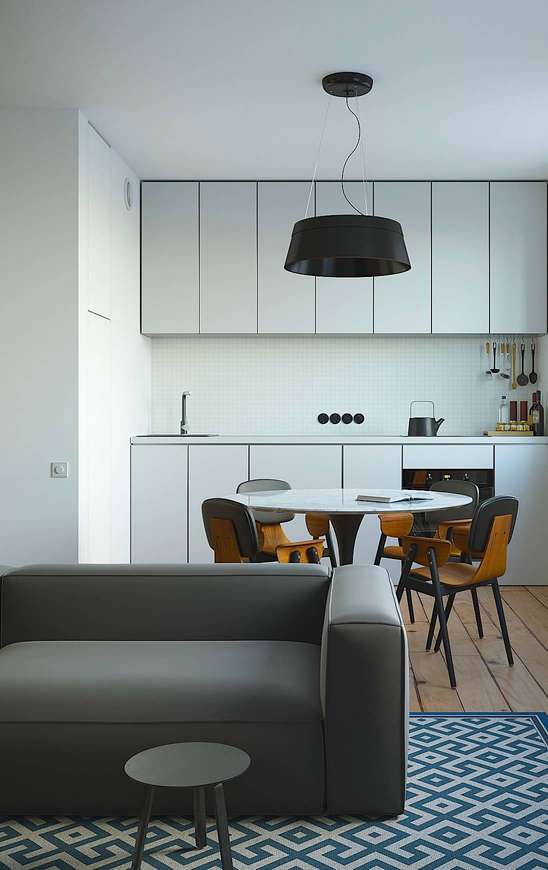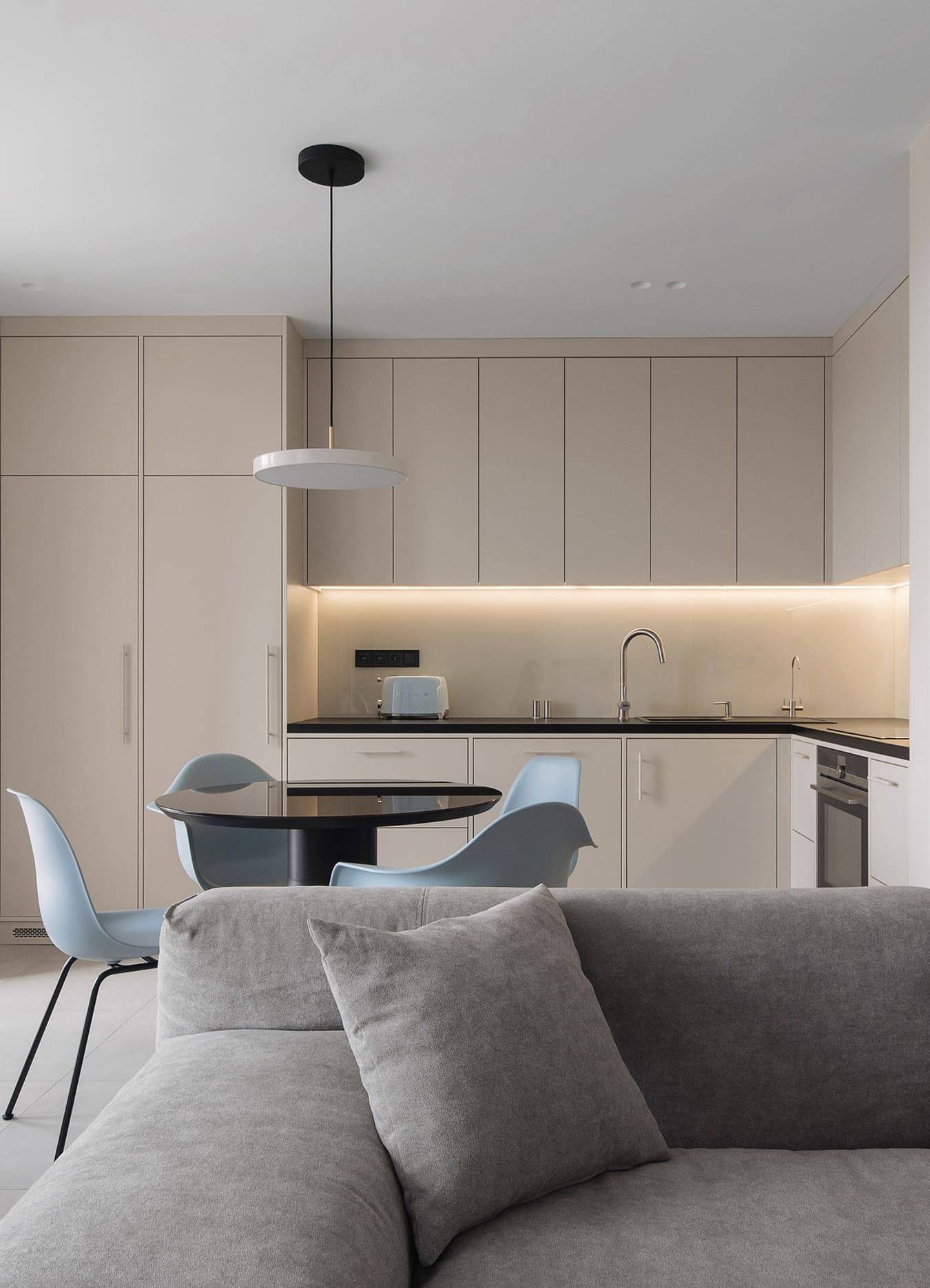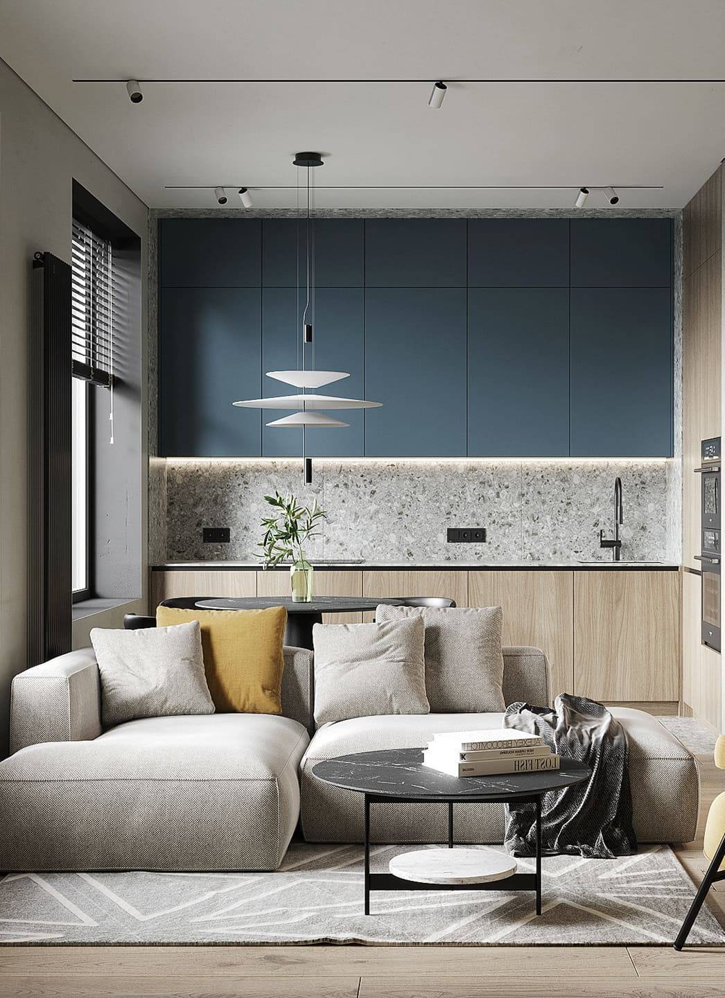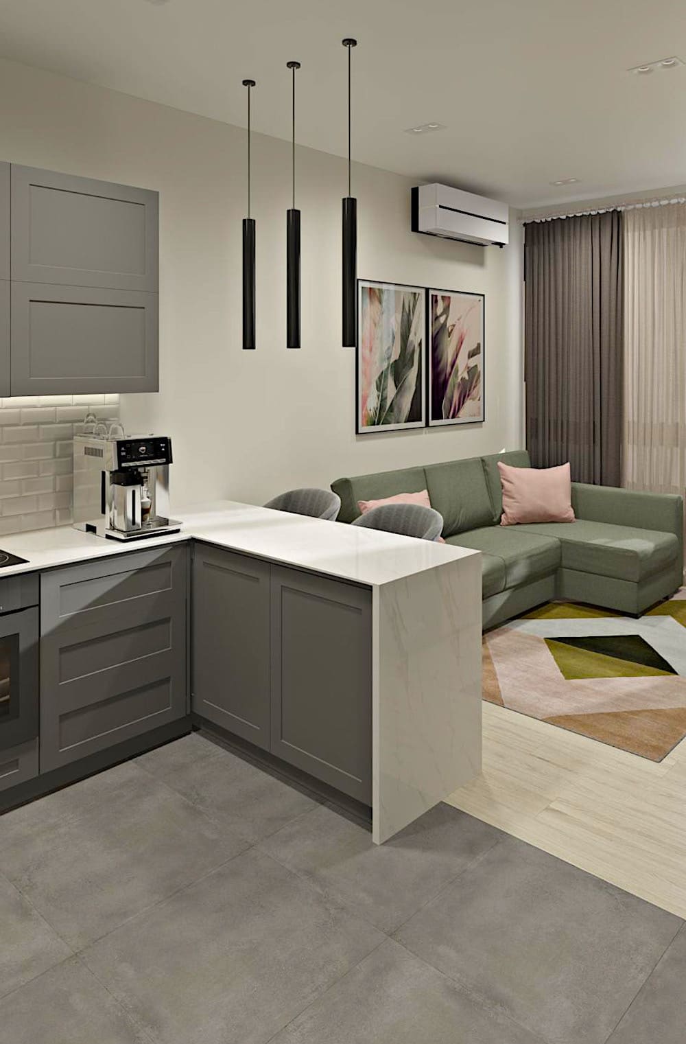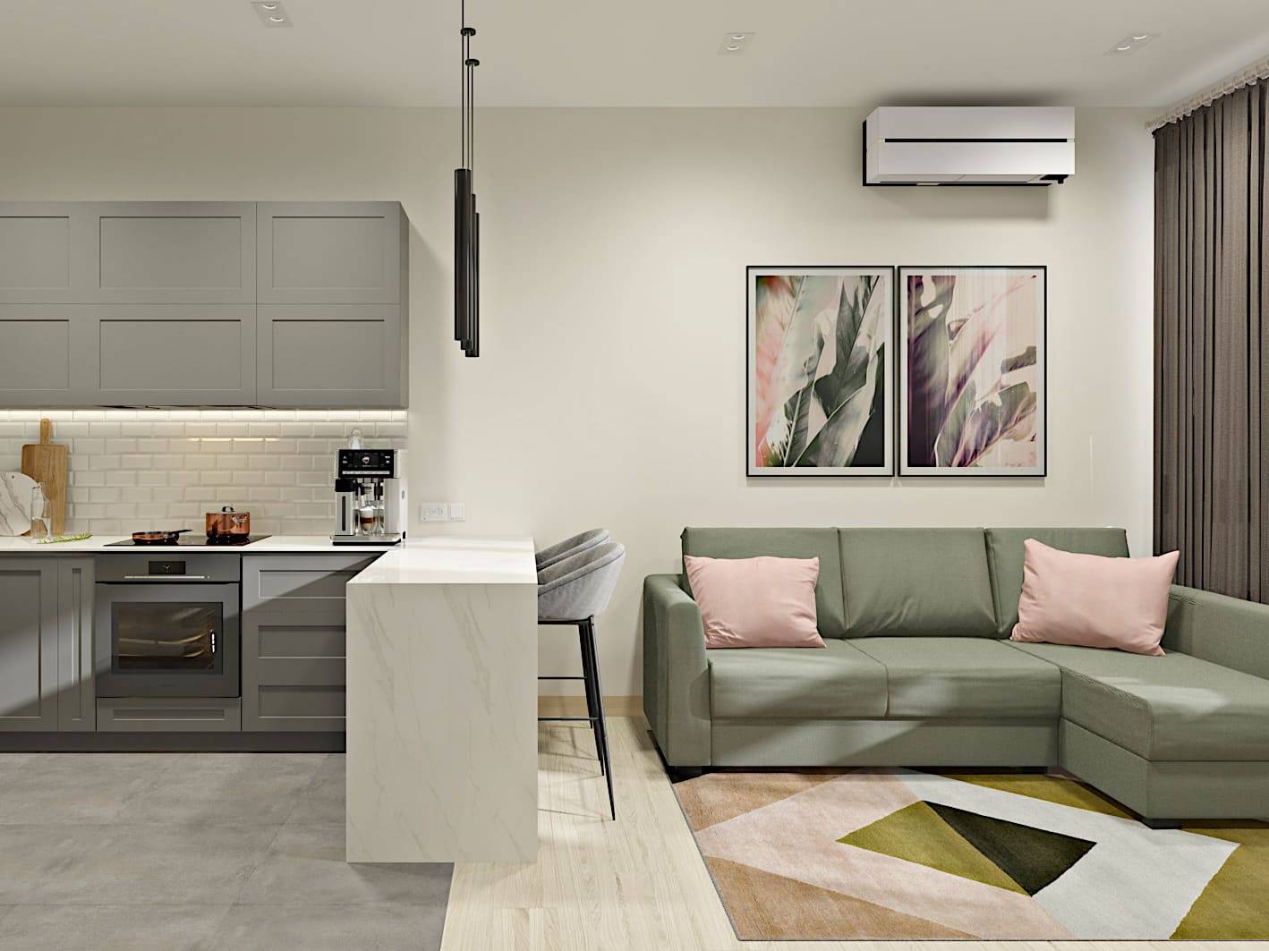 Как оформить кухню-студию с диваном и телевизором на 12 квадратах