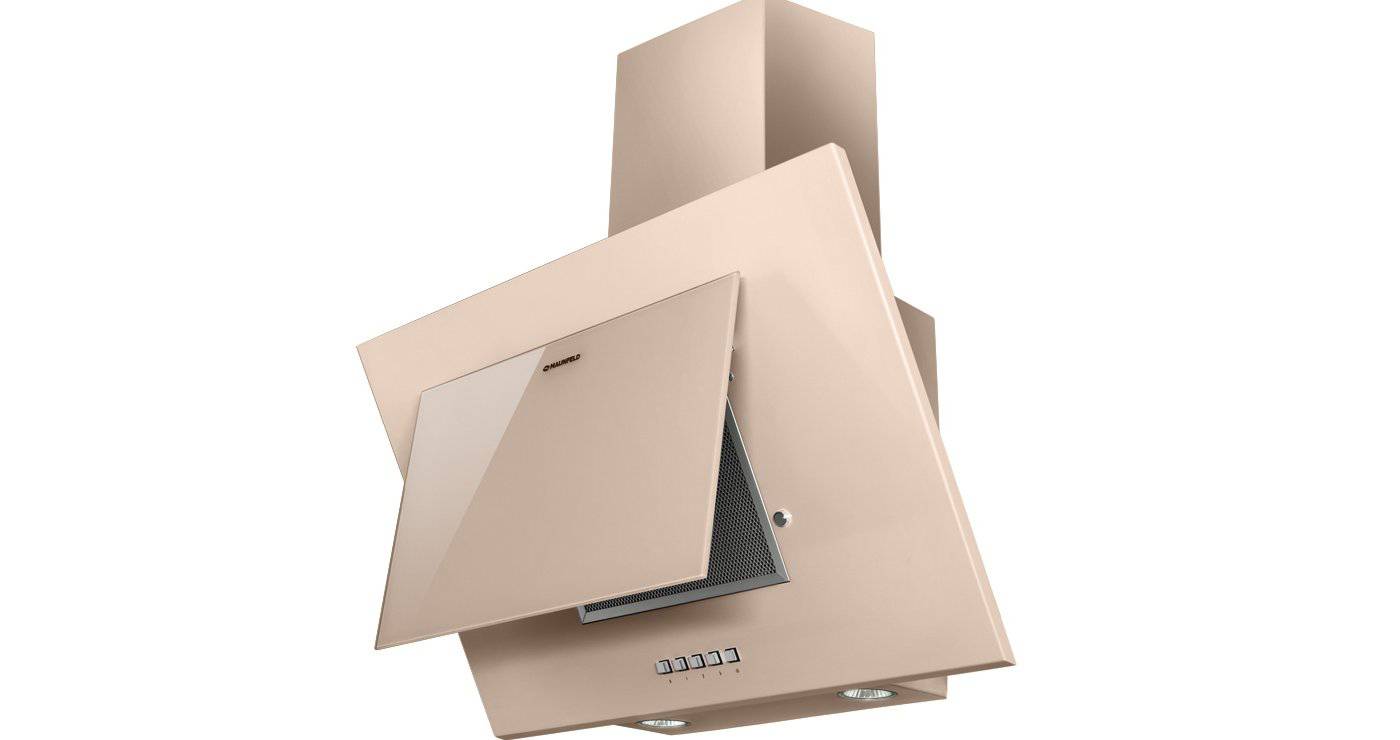 Прекрасным решением станут рубрики и стеклянные устройства объемных размеров. Их глянцевая черная или белая поверхность легко комбинируется с украшением яркими матовыми цветами. Чтобы наполнить помещение домашним теплом и уютом, дает бежевая вытяжка, ее панели не будут выглядеть броско, и красиво подчеркнут обзор и оттенки мебели.