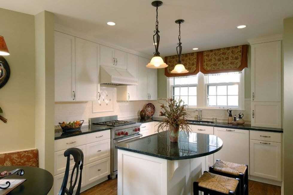 Дизайн интерьера маленькой кухни с островом