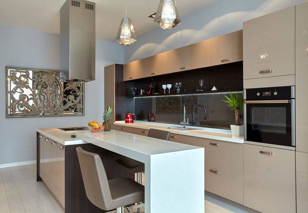 Однако применение отличается определенными особенностями, о чем важно и необходимо помнить при составлении соответствующего проектного решения на кухне. Данное решение обладает рядом характерных преимуществ: