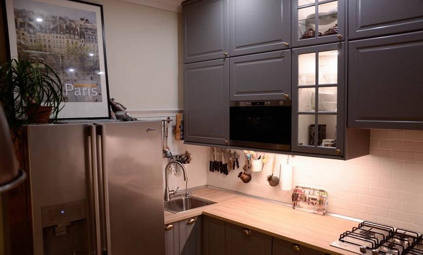 Левый и правый углы — места в кухонном помещении, в которые холодильник ставят чаще всего.