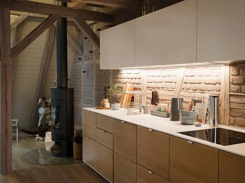 Ещё один популярный вариант — фасады с имитацией или натуральной текстурой дерева. Они подойдут как для скандинавского интерьера или классики, так и для кантри.