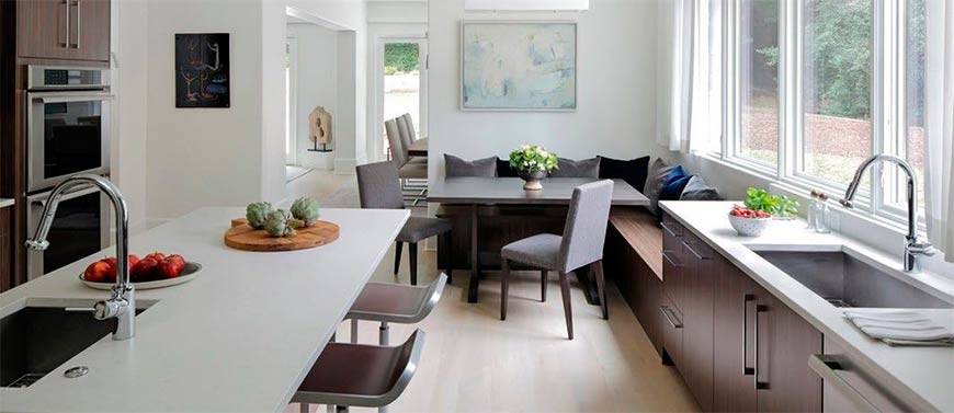 Если же вы хотите установить модель дивана побольше, то выбирайте ту, что гармонирует по цвету с кухонным гарнитуром.