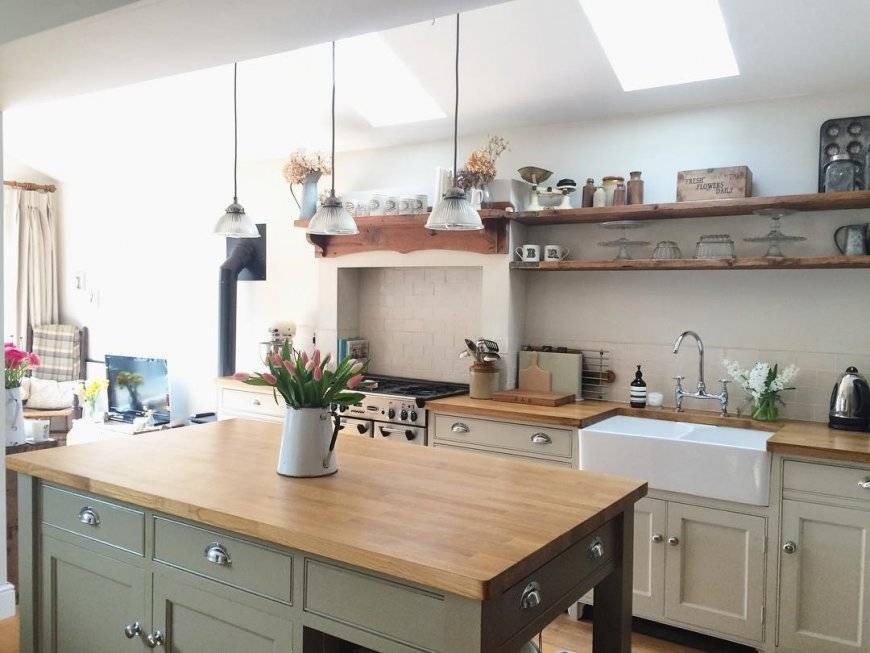 Кухня в данном стиле создаст неповторимую атмосферу простой деревенской жизни. Здесь не нужна вычурная мебель, которая покажет роскошь хозяев. А вот фурнитура с эффектом потертостей будет в самый раз.