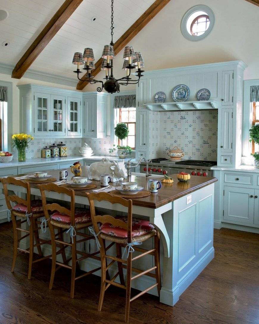Сочетание деревенской простоты и светлых оттенков отражают всю суть этого направления. Крупные фасады ящиков, кованая фурнитура, грубые массивные тумбы. Отшлифованные, покрытые только лаком деревянные конструкции придадут интерьеру больше натуральности. Для большего эффекта состарьте некоторые поверхности.