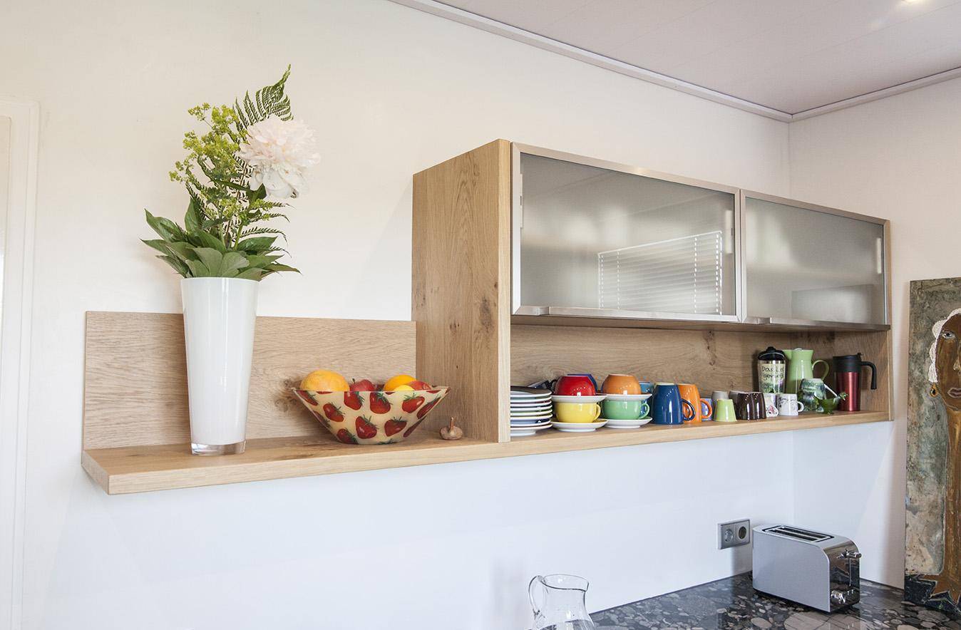 - нужно красиво экспонировать стильные элементы кухонного оборудования – посуду, контейнеры;