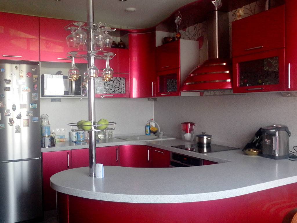 При оформлении кухни в таком стиле, стоит учитывать оптические свойства красного цвета. Разрабатывая дизайн кухни, красные оттенки лучше использовать только как акцентирование внимания на каком-то элементе, чтобы не перегрузить пространство.