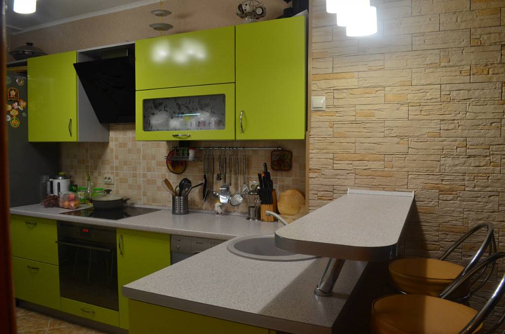 - если кухня не столь велика, как хотелось бы, барная стойка может совмещать сразу несколько функций: заменять собой обеденную зону, быть частью подоконника, либо служить «разделителем» в квартирах-студиях.