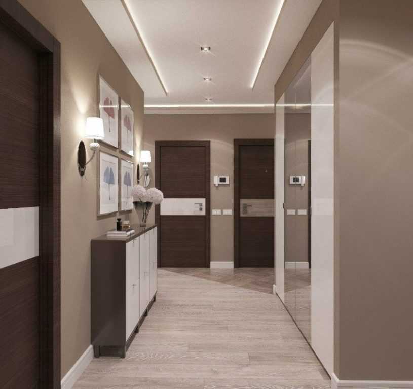 Подвесным. В зависимости от выбранного дизайна монтируемая конструкция может быть одно- и многоуровневой. Однако в силу своих конструктивных особенностей подвесные потолки отнимают пространство, что может стать серьезной преградой при оформлении длинного коридора;