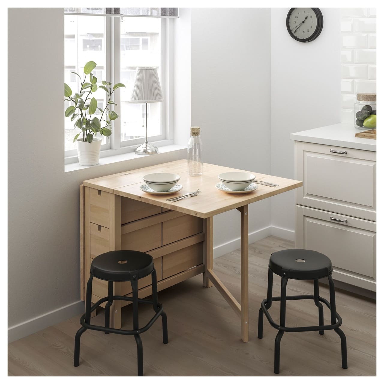 Последние годы большую популярность приобрела трансформирующаяся мебель. Ее часто можно увидеть на фото дизайна интерьера небольшой кухни-гостиной. Это могут быть складные столы и стулья, часто крепящиеся к стене. При необходимости их легко разложить, в сложенном состоянии не занимают полезную площадь.