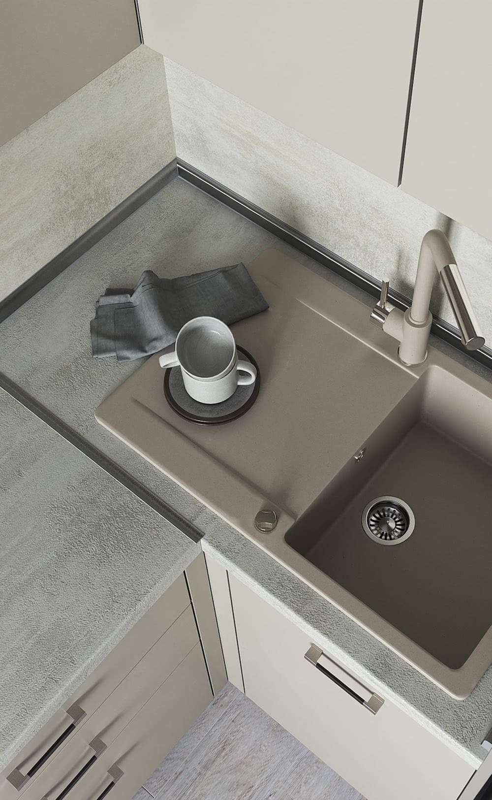 Проектировать расположение логичнее начать с мойки, так как коммуникации под нее уже подведены и обустроены. Нежелательно обустраивать раковину вблизи стены, ведь в процессе мытья можно задевать рукой стену, что крайне некомфортно. Самый лучший вариант – мойка посередине гарнитура.