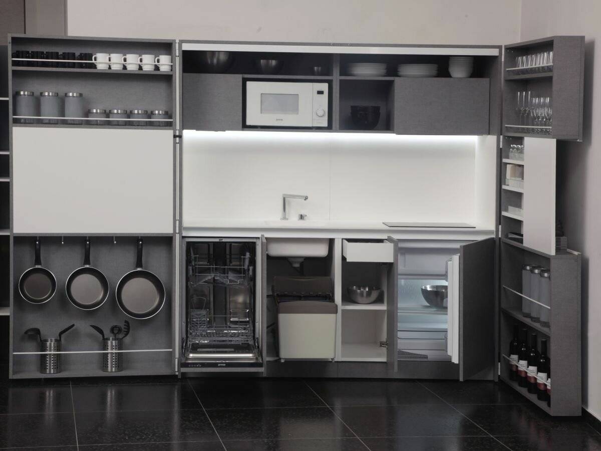 В маленькой кухне-гостиной стоит прятать технику за фасадами
