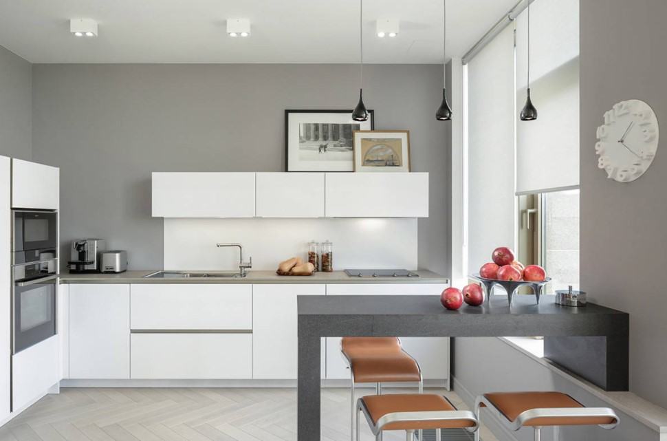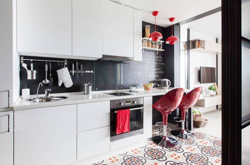 Зонирование кухни-студии в квартире или комнате можно проводить разными приемами: