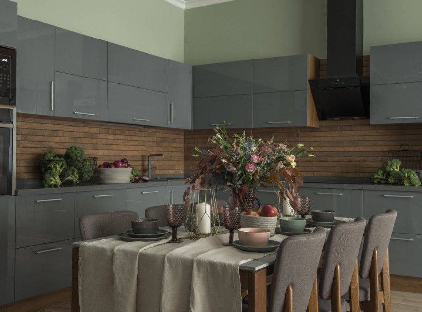 Такие тона используются в небольших квартирах осторожно и только в сочетании с основным светлым оттенком. Цвета не должны быть слишком насыщенными. Не подойдут яркие варианты темно-синего или фиолетового — вместо них стоит взять приглушенные и дымчатые