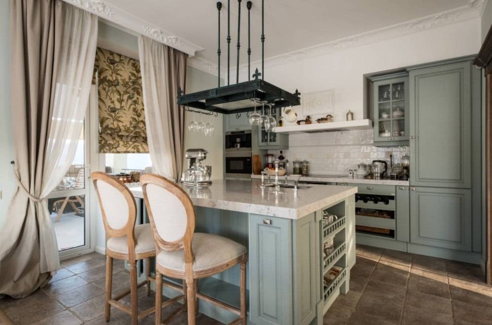 6.Шторы – легкий тюль, струящиеся кисеи или плотный занавес отделят кухню от гостиной, не отягощая интерьер.