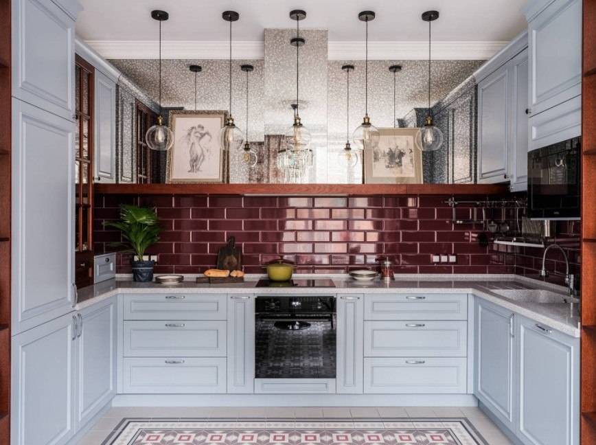 7.Фактура и расцветка материалов, которыми оформлены стены, потолок, фартук, пол, другие горизонтальные и вертикальные поверхности.