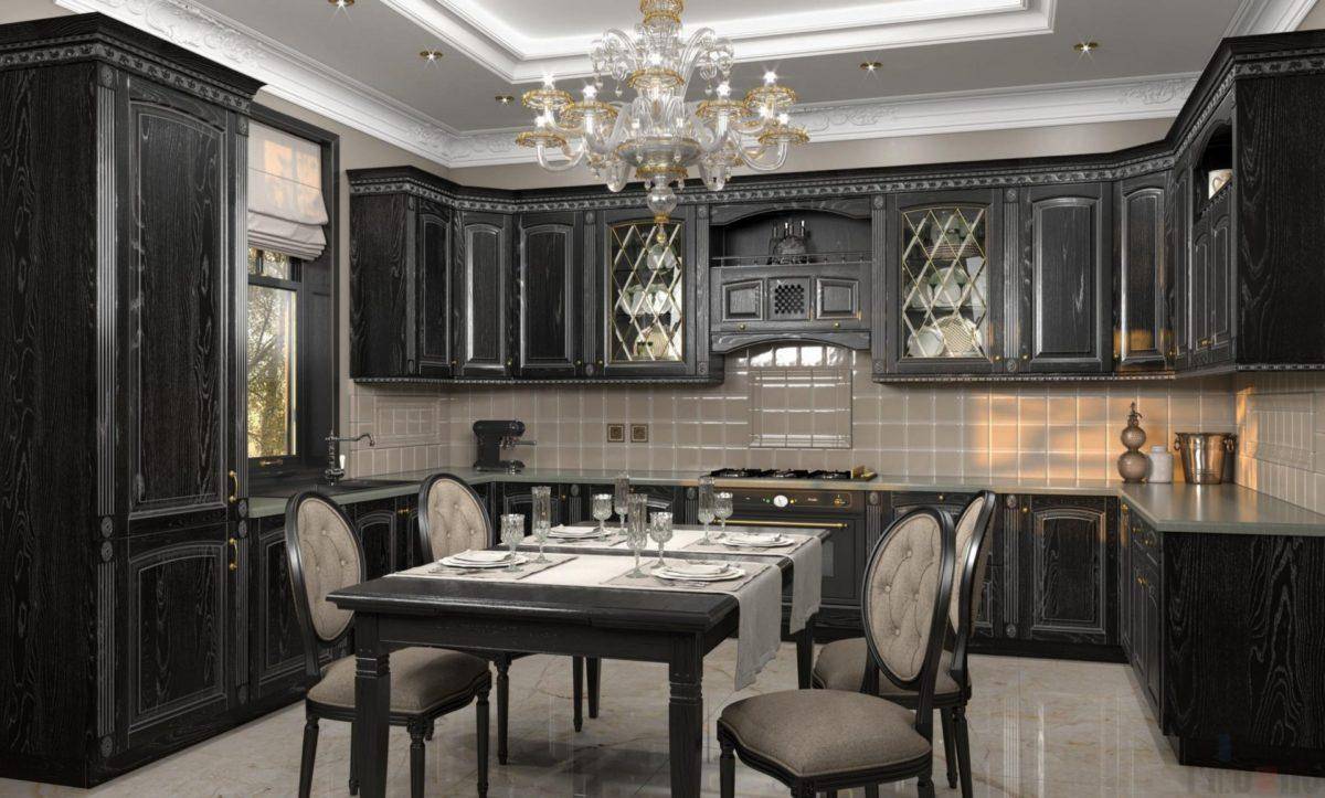 Тёмные гарнитуры подходят разным стилям – от классических и антикварных до лофта и хай-тека.