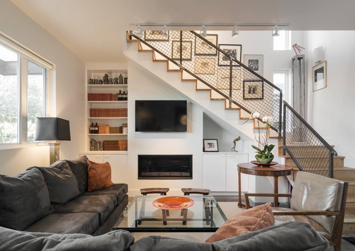 Открытая конструкция позволяет сэкономить пространство, расширив его визуально. Кухня, совмещенная с лестницей, даст возможность соединить два небольших по площади элемента дома и создать одно единое пространство, наполненное светом и воздухом.