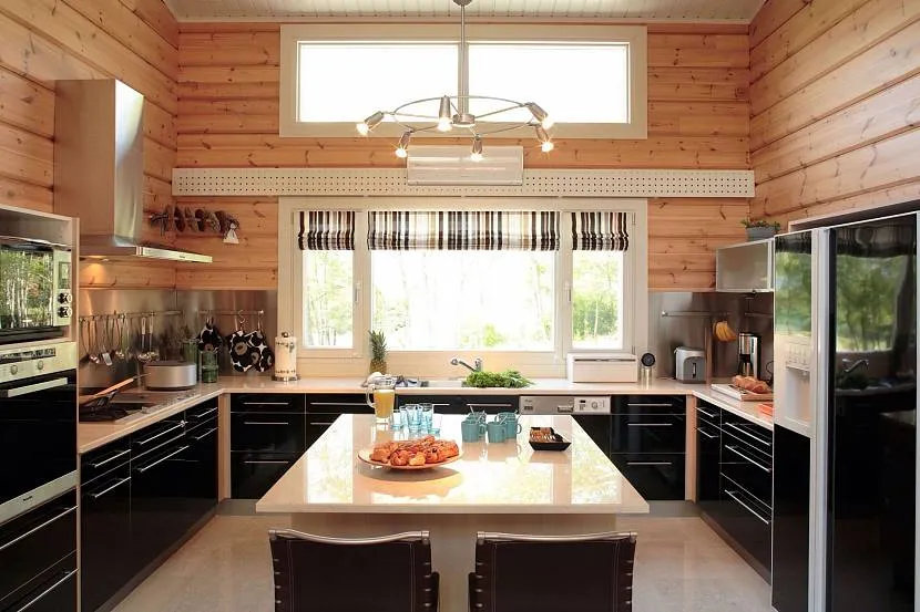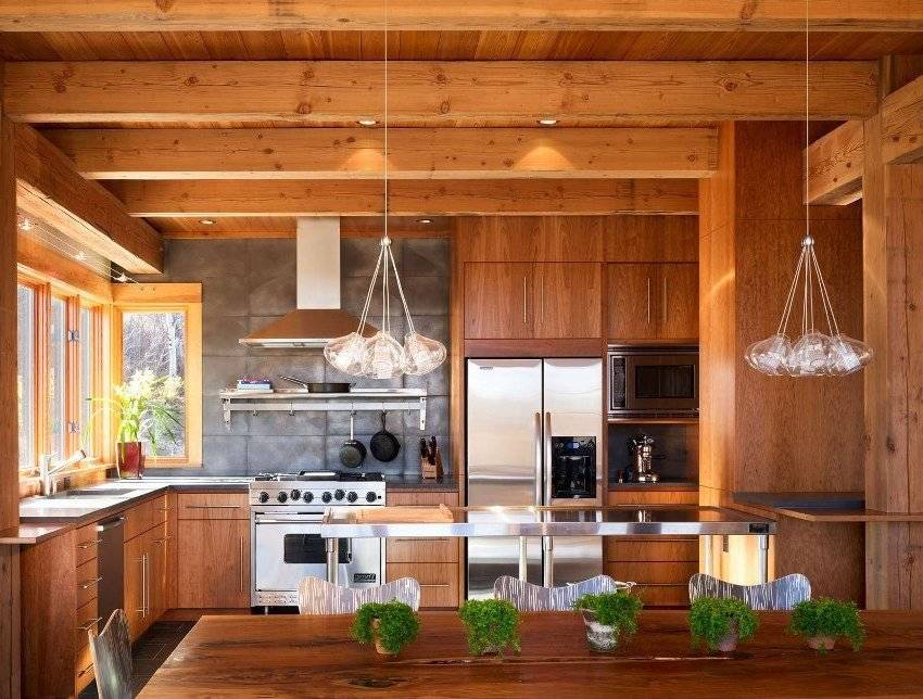 Интерьер кухни в деревянном доме зависит от выбранного вами стиля, но любая отделка должна отвечать требованиям: