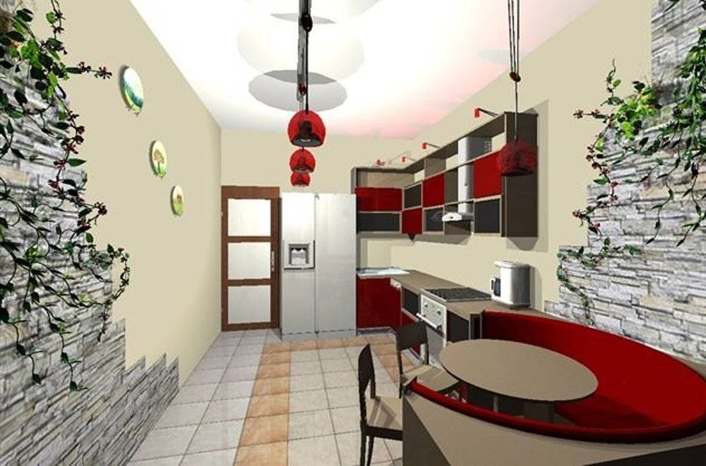 Красный на кухне в восточном стиле встречается в деталях декора, мебели и текстиле. Иногда подобный цвет берут за основу в отделке или выделяют одну из стен. Чтобы не получить вызывающий интерьер используют терракотовый оттенок.