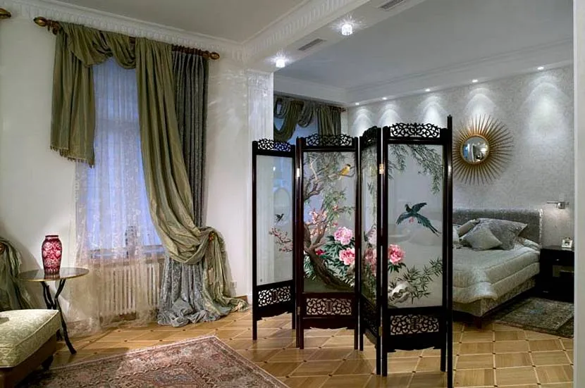 При создании интерьера желательно помнить, что необходимо наличие перегородок или ширм, разделяющих помещение на определённые зоны. Также они придают комнате гармоничный облик и просто украшают его. К тому же, складные перегородки легко транспортировать по комнате, каждый раз устанавливая её в новом месте. Это помогает обновить наскучивший дизайн и внести в него изюминку.