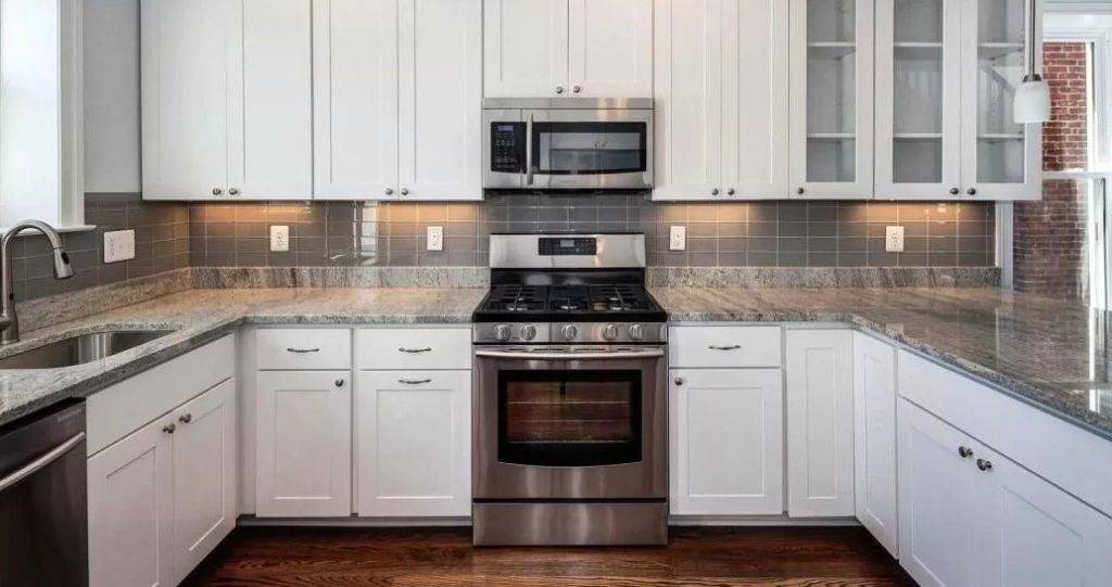 П-образная кухня требует индивидуального подхода. Дизайн должен сочетать в себе высококлассную технику, белую мебель и классические цвета отделки.