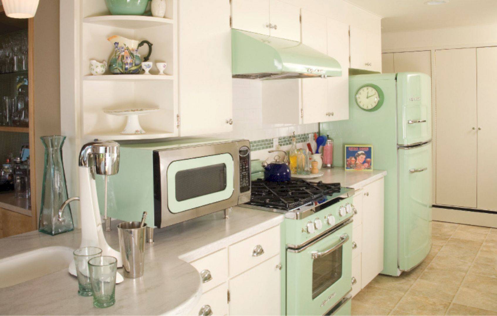 Вам важно убедиться в том, что все элементы сочетаются между собою, поэтому проявите внимательность к деталям. И тогда у вас получится создать замечательную кухню в стиле ретро!