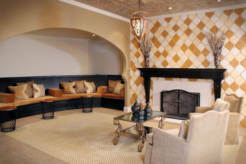 Немаловажной задачей создания гармоничной картины интерьера в марокканском стиле является умение сочетать теплые и холодные тона при подборе оптимального варианта внутренней отделки помещения