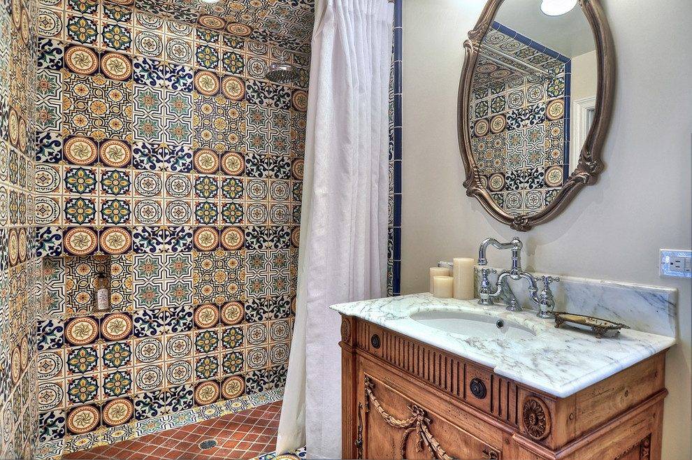 Разноцветная марокканская плитка красиво украсит стену в санузле