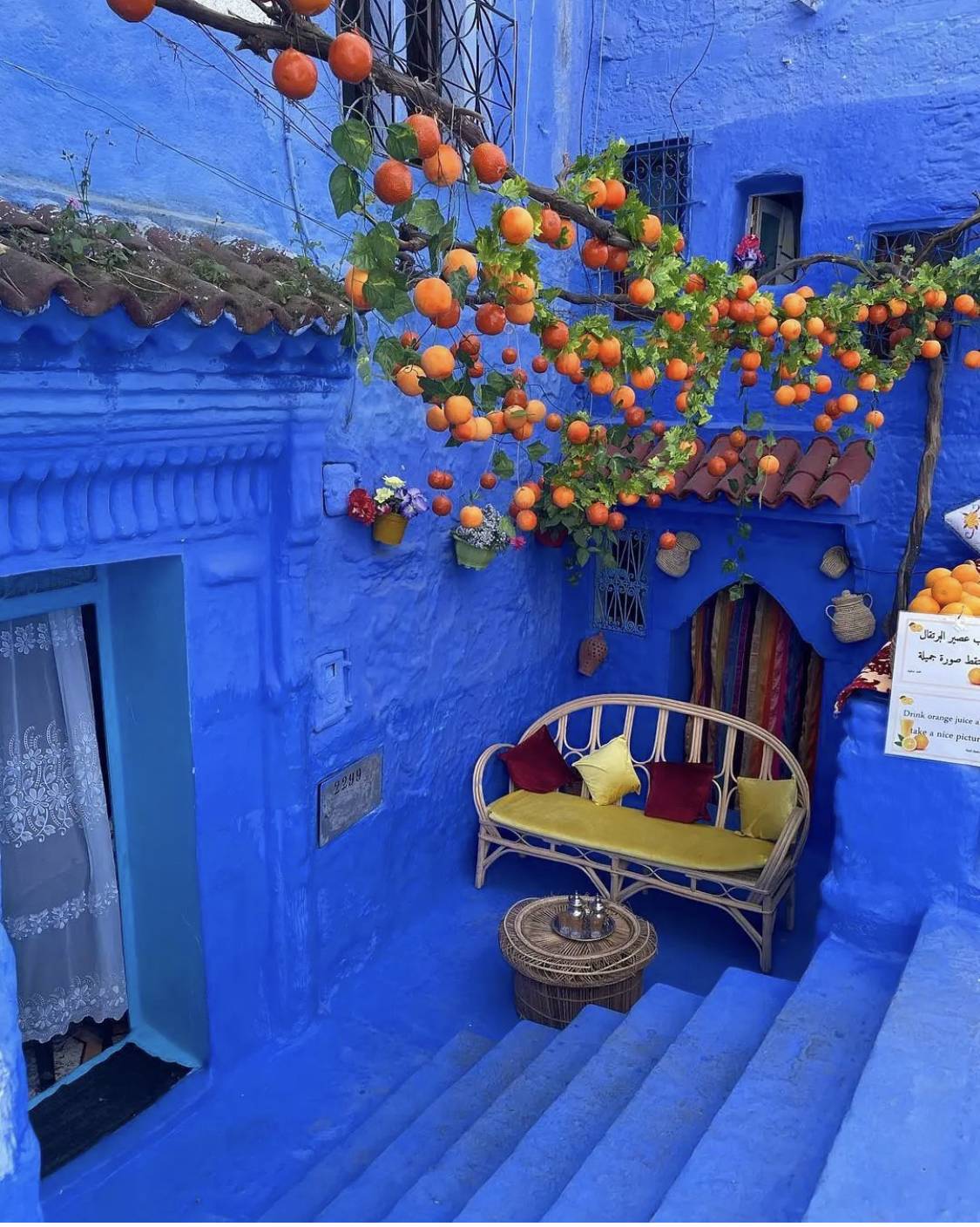 Прибрежная среда играет важную роль в цветах, так как этот дизайн отличается насыщенным синим и зеленым, а также терракотовым красным и апельсиновым, которые отражают закат и песок. В целом, марокканский стиль прекрасен и элегантен.