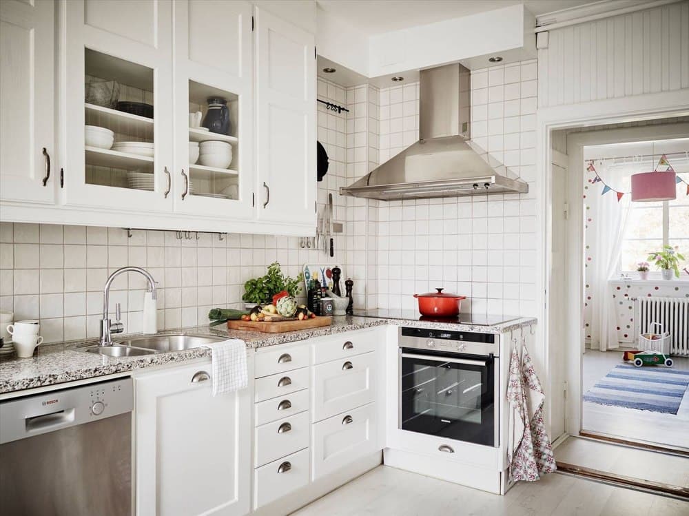 Если вы хотите создать настоящую кухню в скандинавском стиле, лучше всего выбрать как мы говорили ранее, белые тона. Использование более светлой цветовой гаммы позволит гораздо большему количеству света проникать внутрь и отражаться от стен, создавая иллюзию большего кухонного пространства, и это также придаст пространству современный вид.