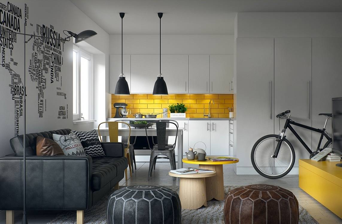 В этом плане выигрышно будет выглядеть кухня-гостиная, выполненная в скандинавском стиле, как на фото ниже.