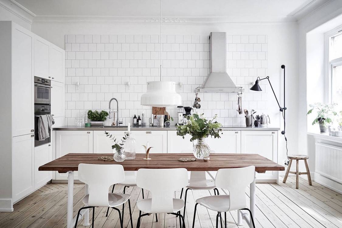 При оформлении кухни в скандинавском стиле существует много разных вариантов. Но самыми распространенными считаются: