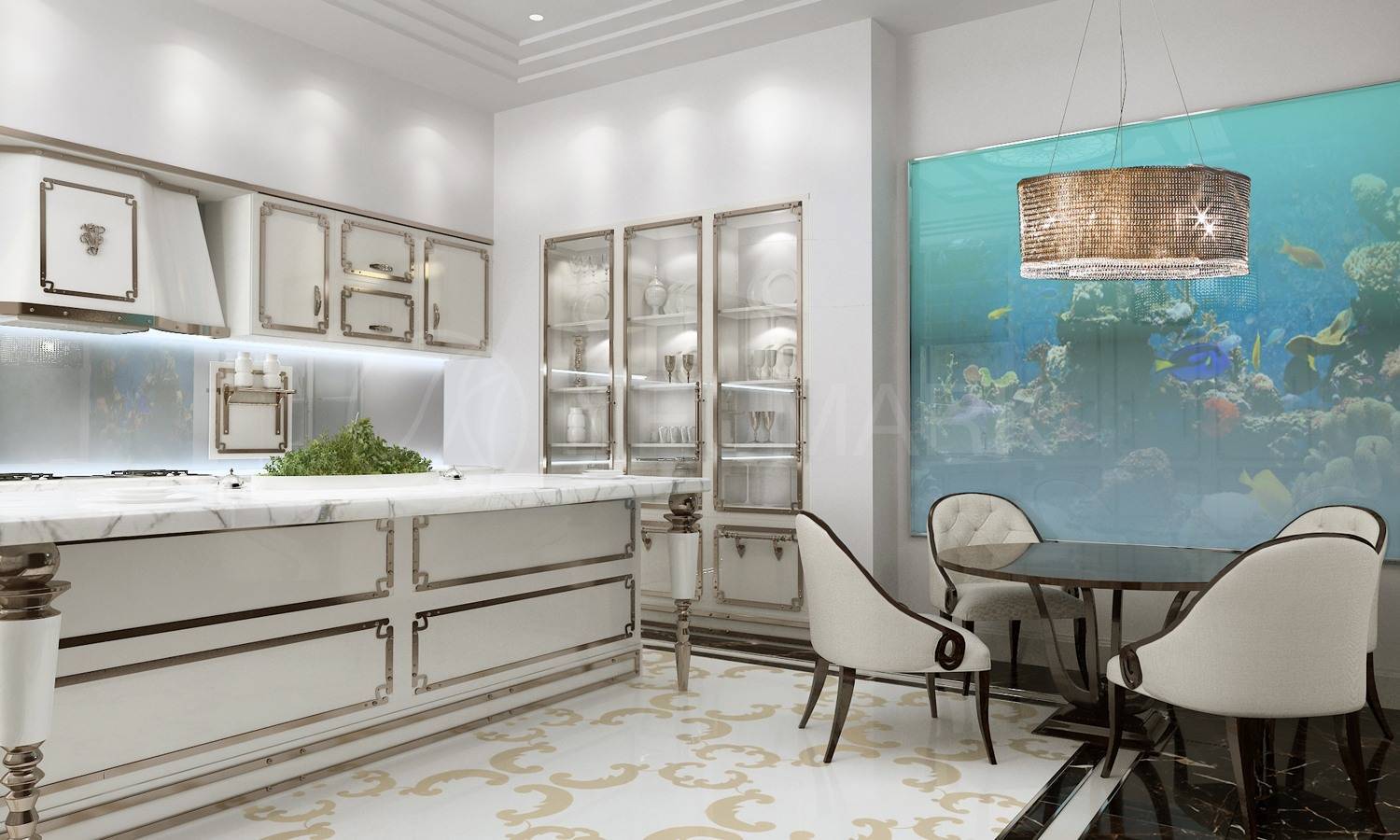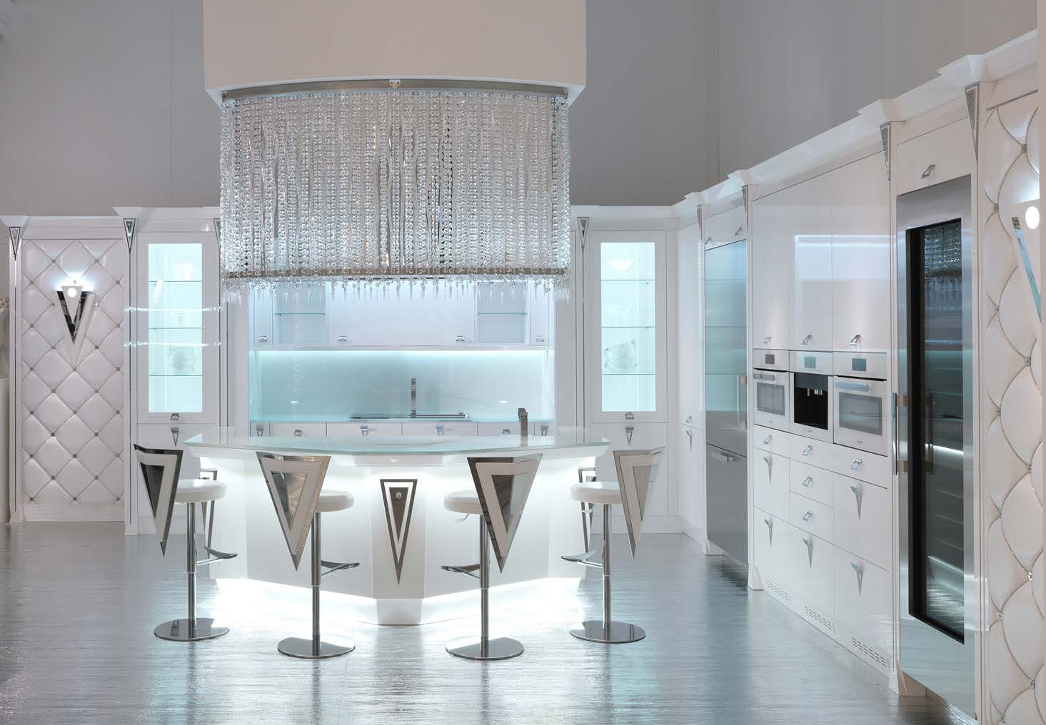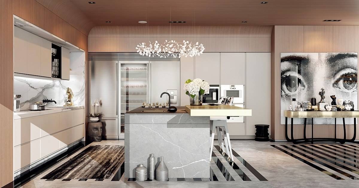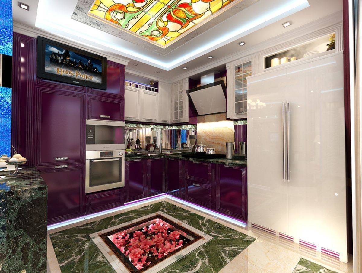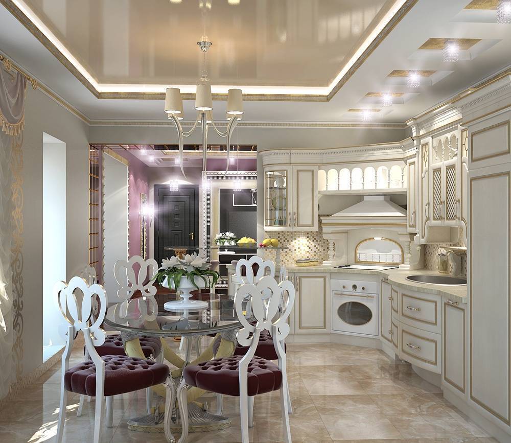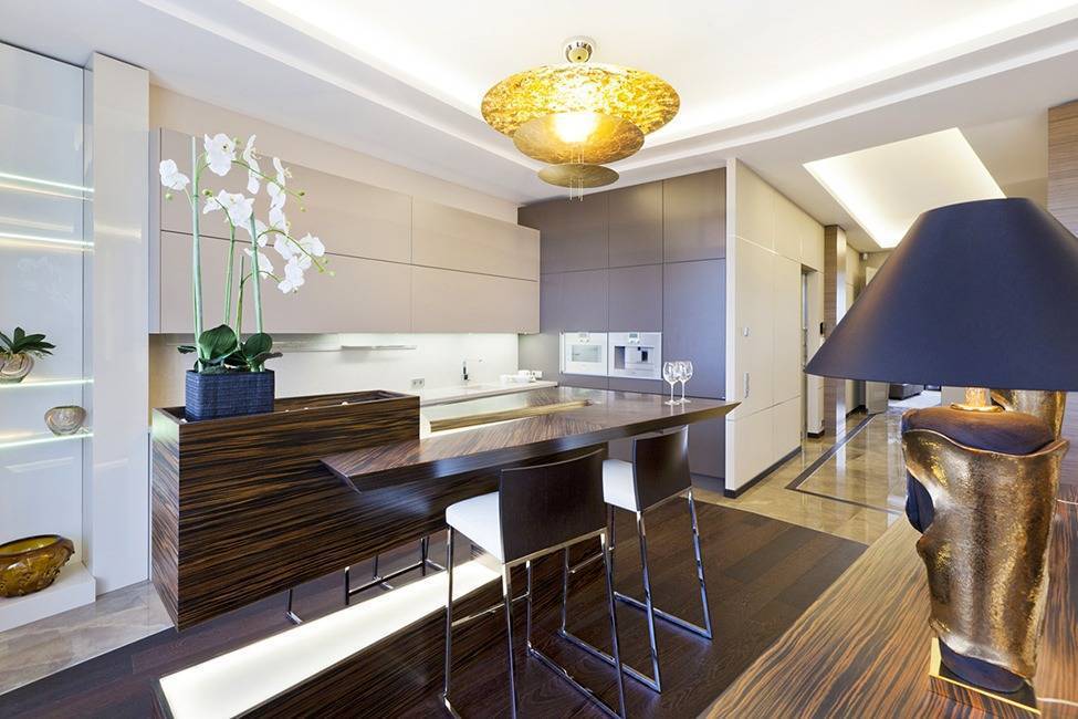 - Чтобы кухня стала образцом роскоши, необходимо забыть об экономии. Этот оригинальный стиль подразумевает выставление дорогостоящих предметов интерьера напоказ.
