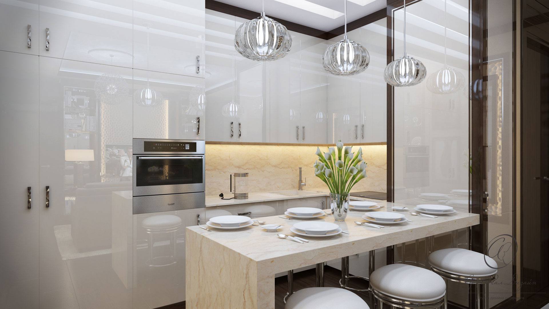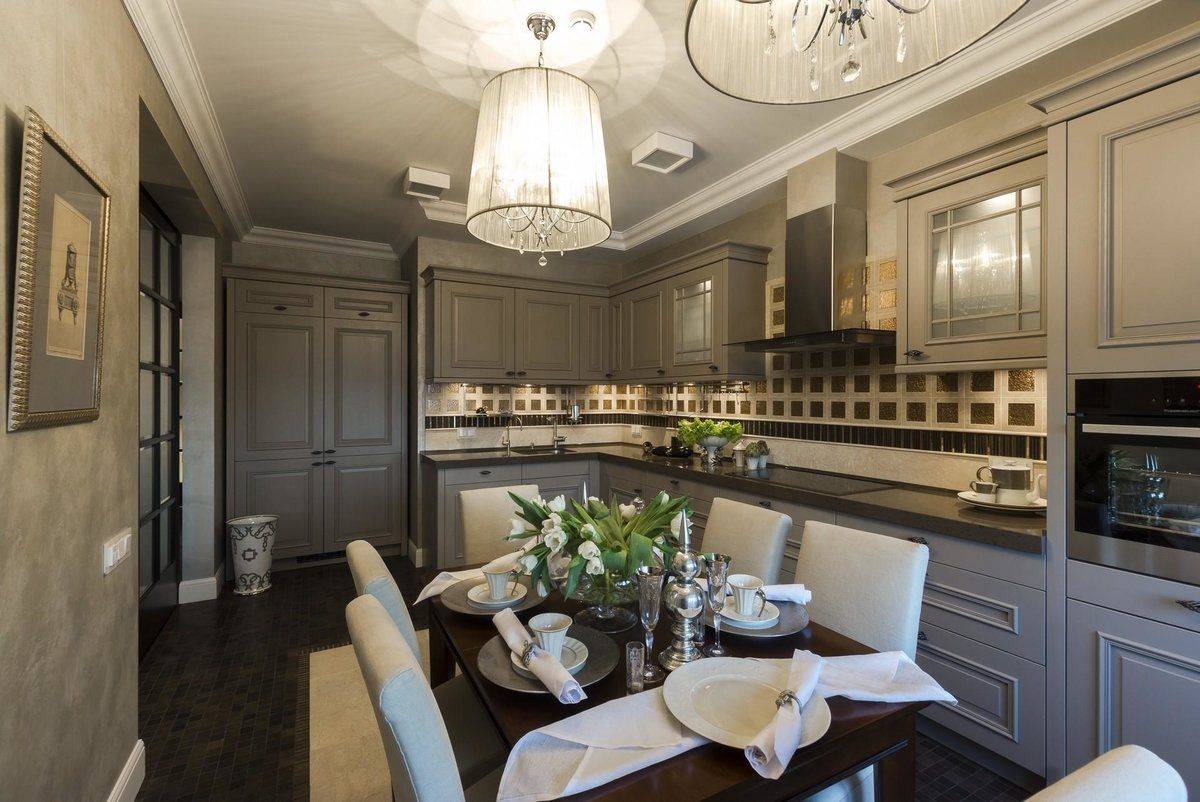 Кухня со столовой в стиле арт-деко