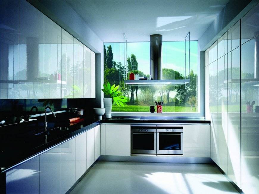 - Кухня будущего. Прогресс не стоит на месте. Здесь приветствуется использование систем электронного освещения, последних моделей бытовой техники, выдвижной вытяжки или жалюзи с дистанционным управлением. Вы даже не представляете сколько всего интересного уже придумали и скоро появится в продаже.
