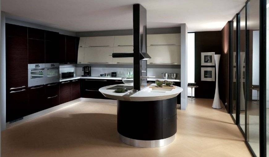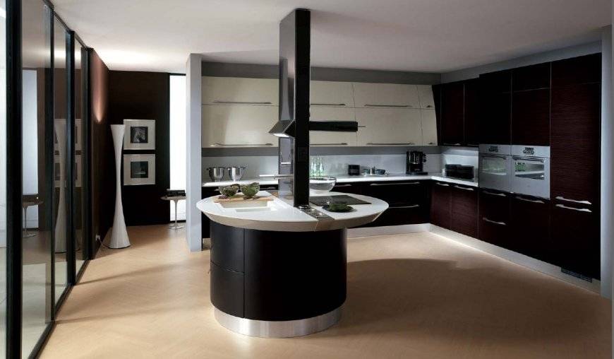 Теплая цветовая гамма в дизайне кухонь хай-тек: фото помещений в коричневом цвете